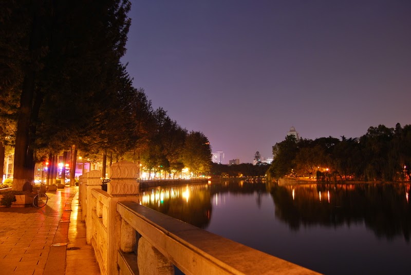 9月22日(土) ラサのホテルから飛行場へ(1時間半) 飛行機は雲南省の香閣里拉(シャングリラ)経由 昆明へ 昆明は大都会である。夕食は15種類のキノコを使った鍋料理。これが最高においしかった。ホテルの前が湖になっていて、周辺を散策。